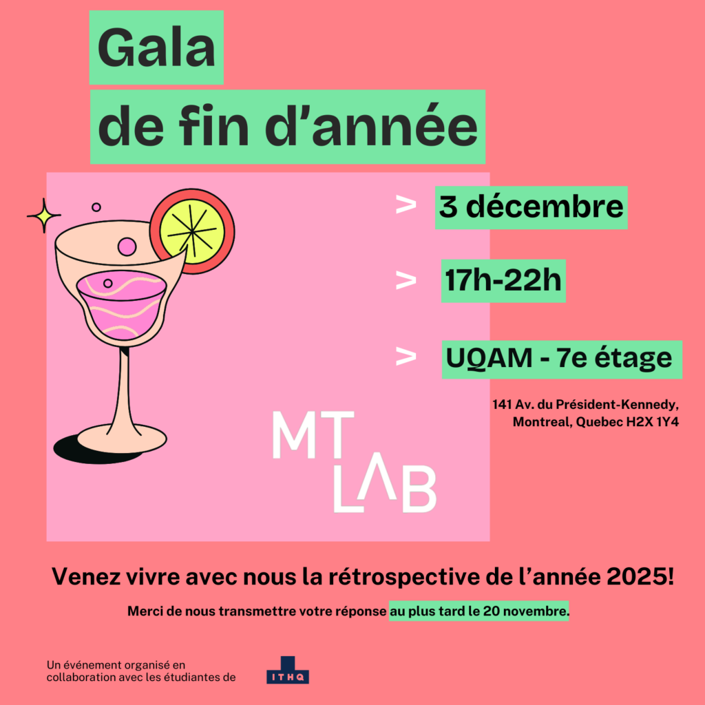Le MT Lab remercie l’ESG-UQAM pour son soutien financier ainsi que pour son implication à titre de membre fondateur du MT Lab.