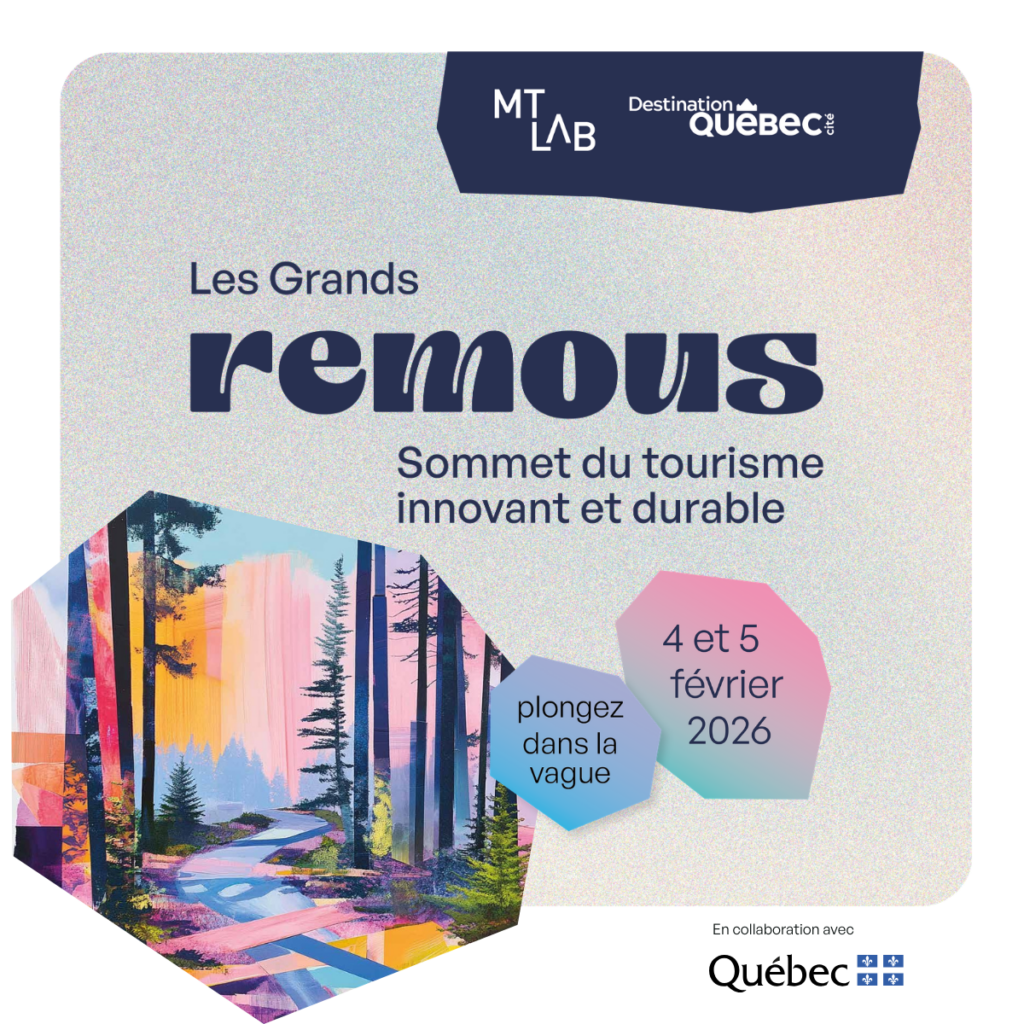 Les 4 et 5 février derniers 2026, Destination Québec cité et le MT Lab ont tenu, à Québec, la deuxième édition de l’événement «Les Grands Remous», le plus grand sommet canadien en tourisme innovant et durable. Dans un contexte où l’industrie touristique fait face à d’importantes pressions économiques, sociales, humaines et environnementales, le sommet a […]
