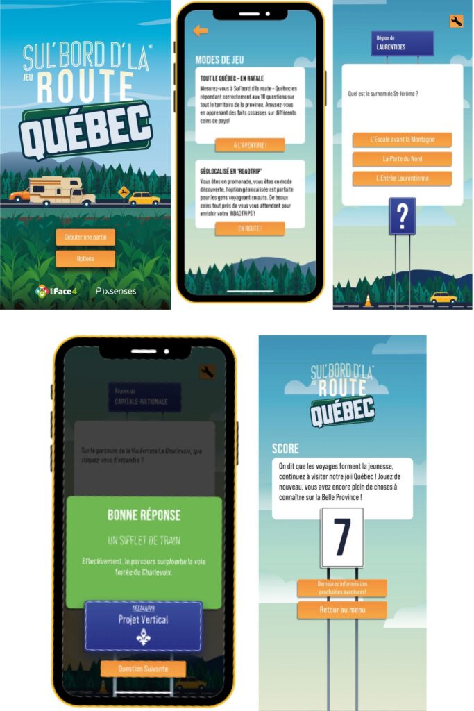 Sul’bord d’la route au Québec est un jeu québécois créé par Jeux Face 4 et transposé en application mobile. Il permet non seulement de divertir les voyageurs, mais aussi d’offrir une visibilité accrue aux entreprises touristiques. Avec deux modes de jeu : géolocalisé et tout le Québec en rafale, les joueurs répondent à 10 questions par partie sur la géographie, l’histoire et les faits touristiques du Québec. En jouant régulièrement, ils peuvent même débloquer des surprises après sept parties consécutives.